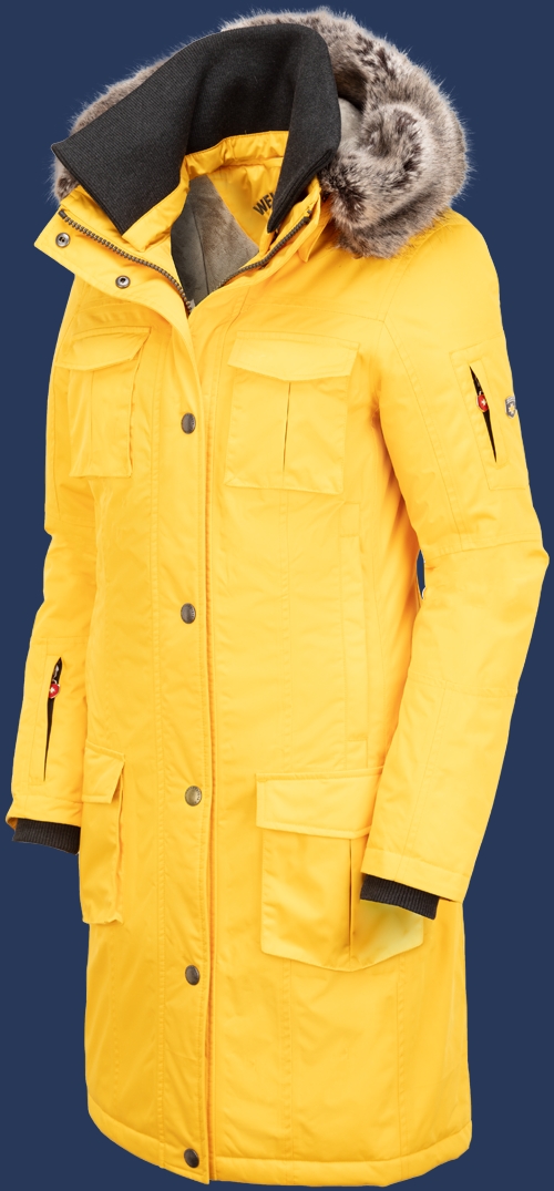 2 Wege Reißverschluss, Abnehmbare Kapuze, Abnehmbares Fell, Aufgesetzte Taschen, Innentasche, Kapuze, Mantel, Napoleontasche, Schwalbenschwanz, Streetwear, Strickkragen, atmungsaktiv, ungesteppt, wasserdicht, windabweisend, Ärmelbündchen, Ärmeltasche